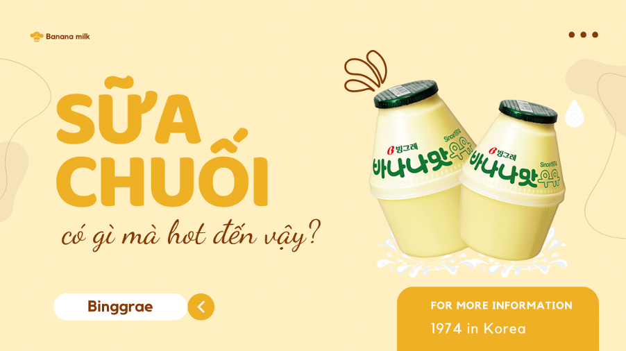 Nếu bạn là mọt phim Hàn hay dân đu idol chính hiệu thì chắc chắn không còn quá xa lạ với món sữa quốc dân của Hàn Quốc – sữa chuối Binggrae. Sữa chuối Binggrae không chỉ được người Hàn Quốc ưa chuộng mà cả người nước ngoài cũng rất thích món này. Đặc biệt những ngày gần đây, cơn sốt mang tên “sữa chuối” hot hơn bao giờ hết. Vậy tại sao sữa chuối lại hot đến vậy? Bài viết này sẽ cho bạn câu trả lời!