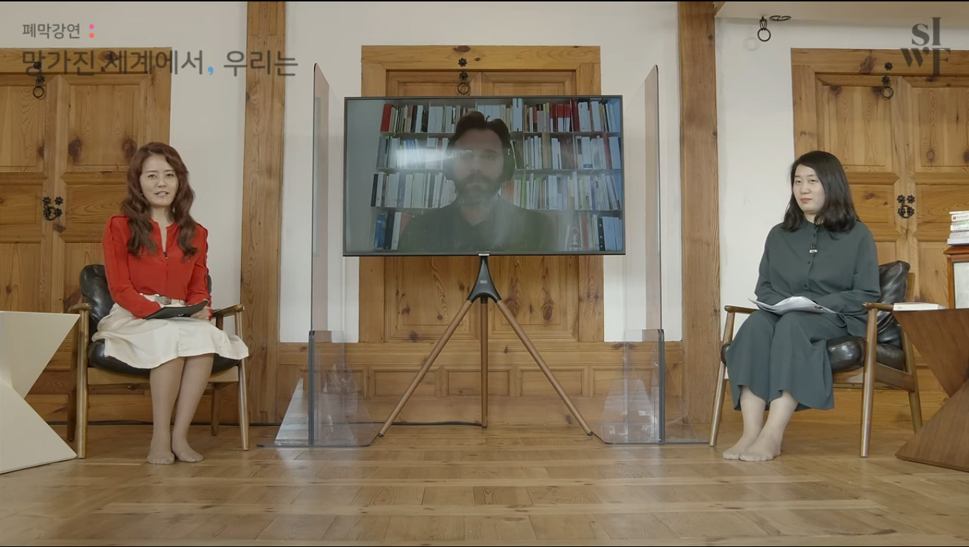 The closing discussion featured writers Chung Se-rang ('You Can Have My Voice') from Korea and Paolo Giordano ('How Contagion Works') from Italy. As the 2020 SIWF concluded, Chung echoed author Hwang Sok-yong's point of view during the opening keynote speech: the cause of the COVID-19 pandemic is our unacceptable conduct towards our planet, and we have the undeniable climate change to prove it. Our species has become highly selfish, and literature can solve our disorientation by awakening our solidarity and sense of community. Giordano concluded that the lockdown in his homeland had negatively affected his reading and writing habits by adding that "each behaviour of us isn't only about us anymore."