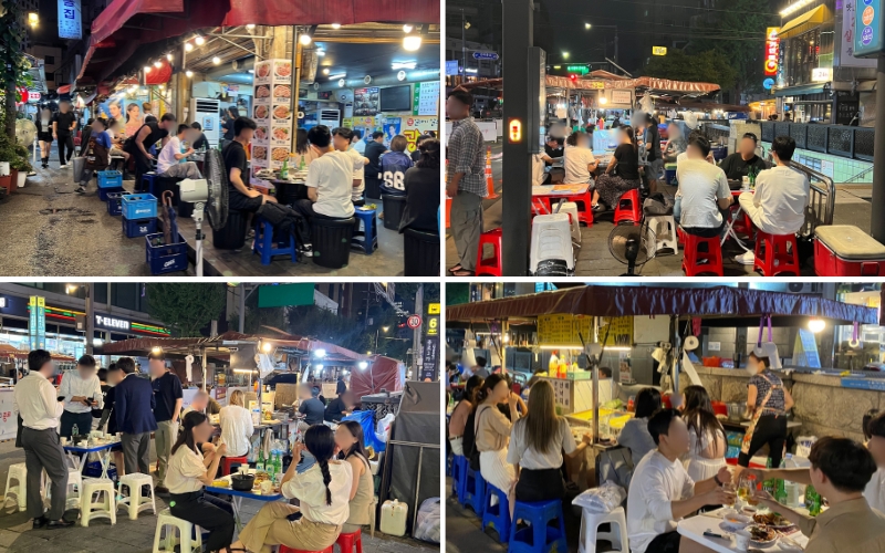 Diese traditionellen Straßenimbisse sind besonders an kühlen Abenden beliebte Treffpunkte, um Soju zu genießen.