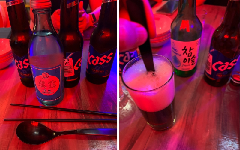 Studenten trinken gerne Soju bei Zusammenkünften, oft in kreativen Mischungen wie "Somaek" (Soju + Bier).