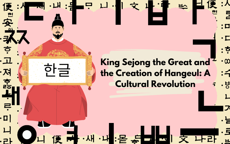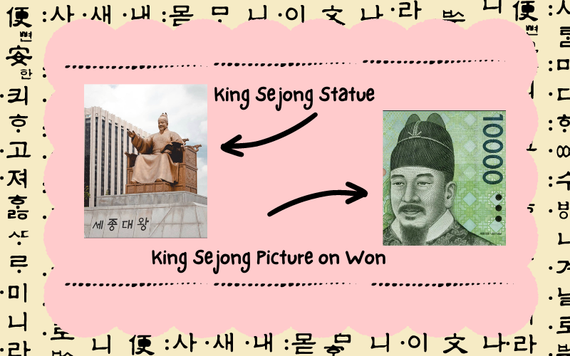 King Sejong's picture represents his involvement in the creation of hangeul, [ Picture credit: made by Sumaiya Chauhan on Canva].