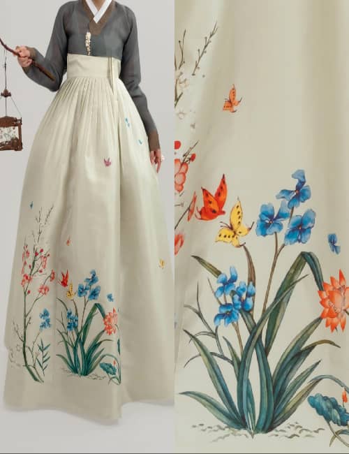 Traditional hanboks often come to mind as narrow hanboks such as skirts, jeogori (Korean traditional jacket), durumagi (traditional Korean overcoat), and vests in the style of the late Joseon Dynasty.