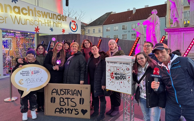 Eine davon fand in Österreich statt: Die BTS Army Österreich sammelte im Rahmen der „Weihnachtswunder“-Spendenaktion des landesweiten Radiosenders Hitradio Ö3 die symbolische Summe von 1.306,13 Euro – ein Betrag, der an das Gründungsdatum von BTS erinnert.