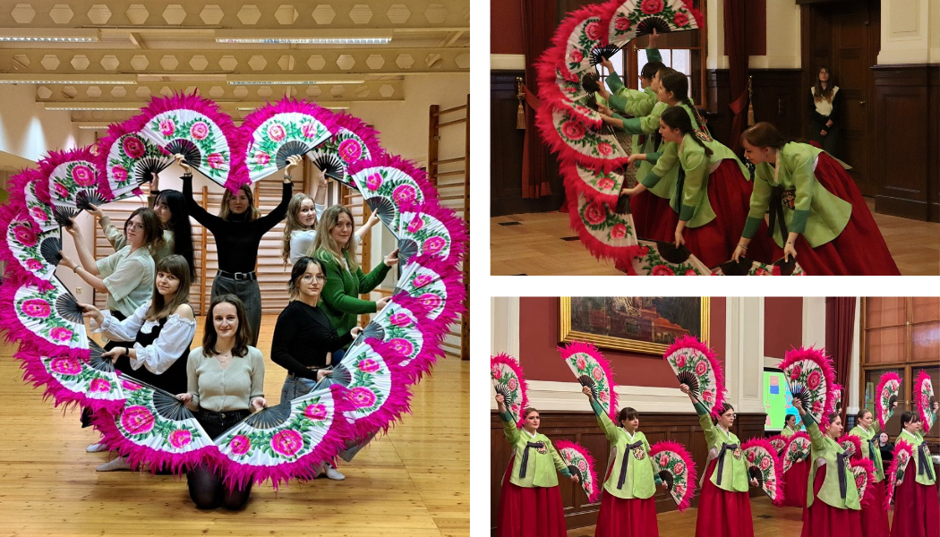 It all started in 2017, when I saw beautifully dressed girls dancing with huge fans at the Korea Festival in Warsaw. I was mesmerized by the beauty of this dance and fell in love at first sight. What I did not know back then was that that particular group was from the very same university I started studying at in 2021. I only found out about it after I joined the group at the beginning of the academic year.