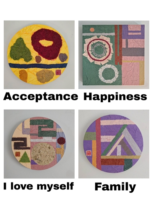 My art reflects Korean identity through both material and message. I use Hanji and Hangul (the Korean alphabet) to express affirmations like “You Matter,” “Radical Acceptance,” and “I Am the Author of My Life.” These messages are deeply personal but also universally relatable.