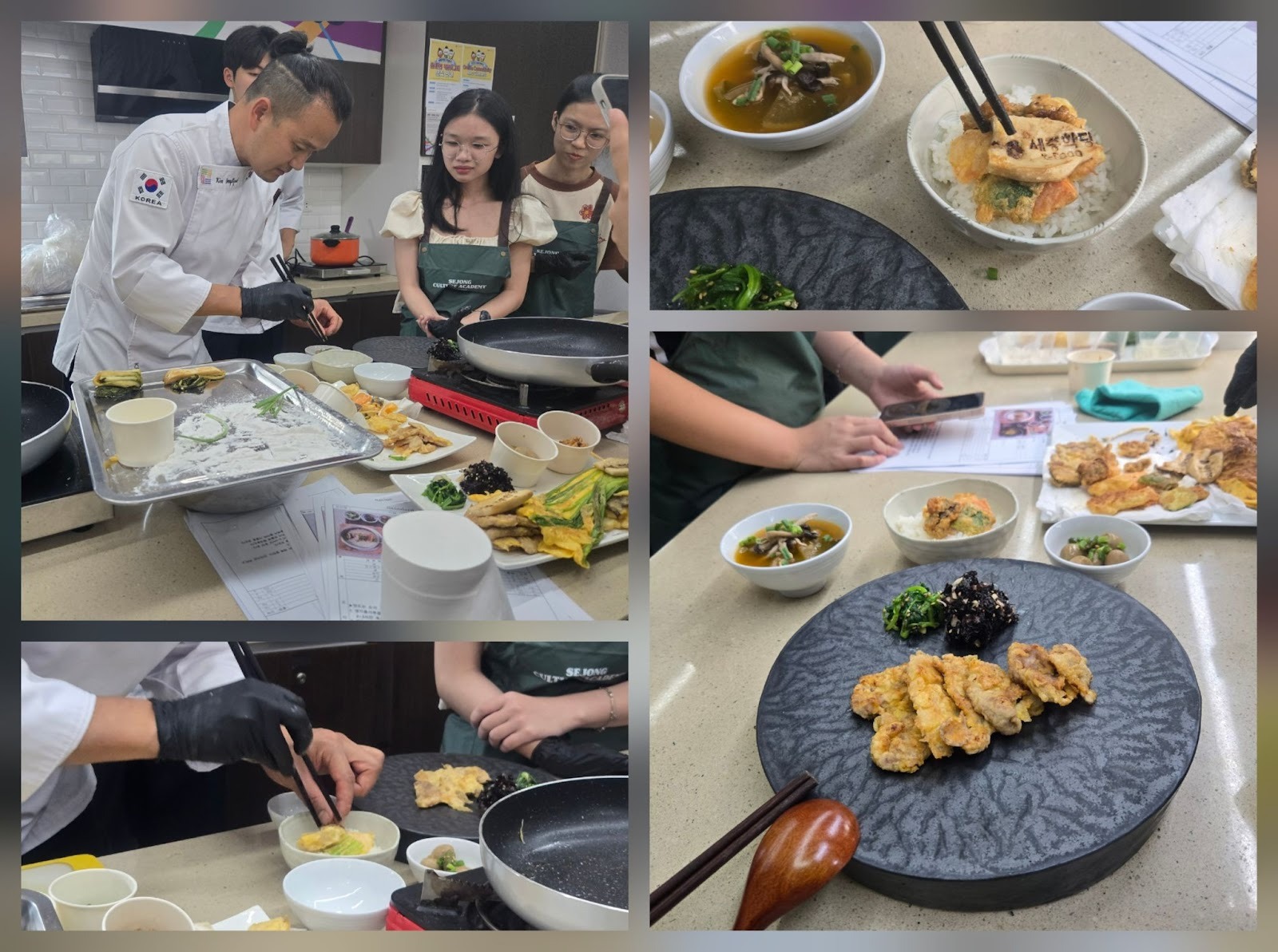 The class was led by Mr. Kim Jong Hyuk, a seasoned expert in Korean cuisine. He has not only worked at numerous high-end hotels in Seoul but also had the honor of preparing the banquet for the Inter-Korean Summit. His presence in the program therefore brought students both great excitement and a deep sense of appreciation.