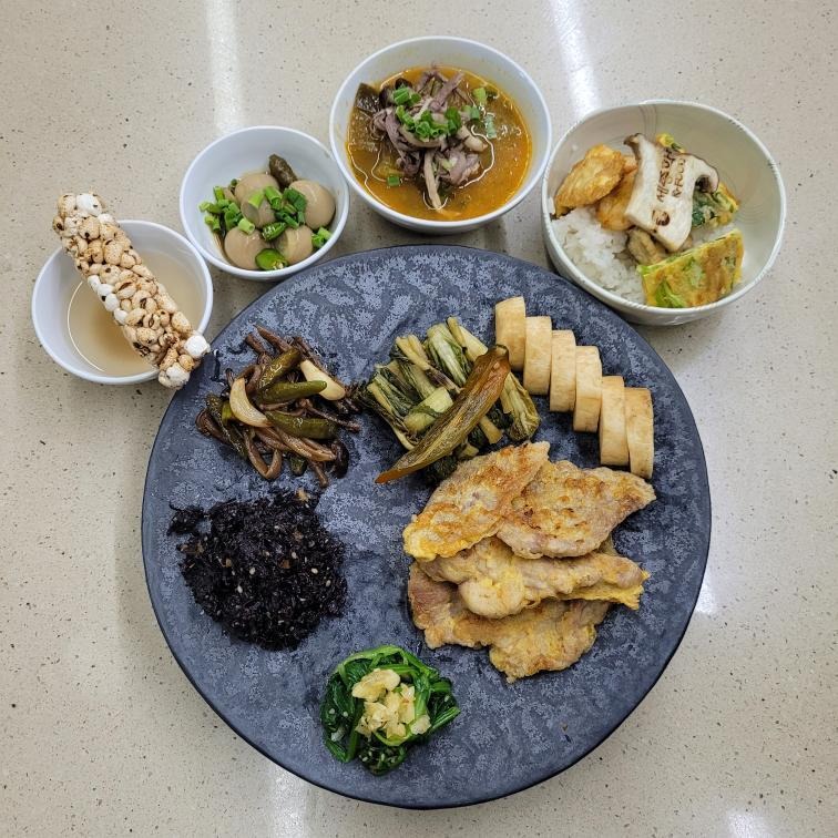 Guided by Chef Kim, we prepared dishes such as Yukjeon (pan-fried beef), Pajeon (scallion pancake), and familiar side dishes (banchan) like seasoned spinach and seaweed—staples in Korean family meals.
