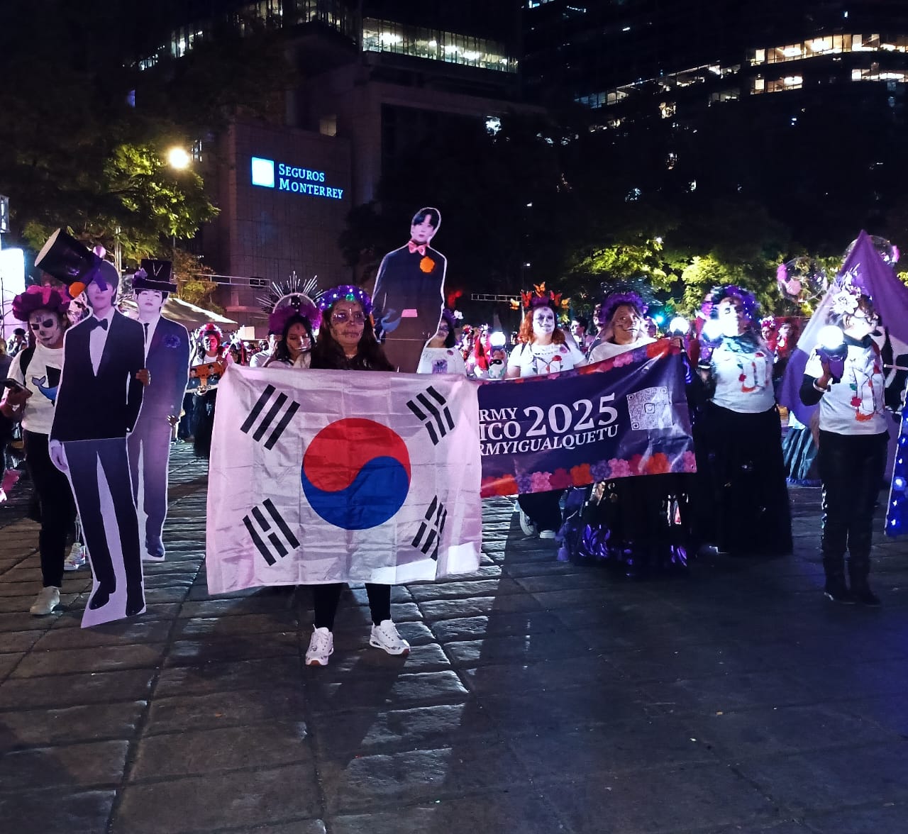 La noche avanzó entre luces y cantos, y la presencia de Corea en la procesión se sintió como un abrazo de dos culturas que, aunque distantes, comparten el mismo latido humano. Porque celebrar el Día de Muertos no solo es recordar a quienes se han ido, sino también mantener viva la alegría de estar juntos, aún en la diferencia. Y así, entre pasos de baile y pétalos de flores, la Mega Procesión de Catrinas 2025 se convirtió en un homenaje universal: México y Corea, unidos por la memoria, la música y el corazón.