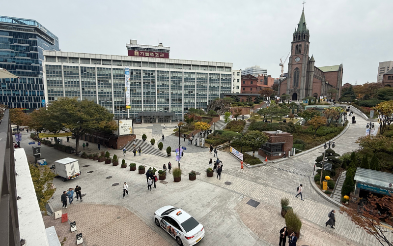 Myeong-dong gehört zu den bekanntesten Stadtteilen Seouls. Die Straßen sind eng, voller Menschen, Läden und Verkaufsstände. Kosmetik, Mode und K-Pop-Artikel prägen das Bild genauso wie das Streetfood, das hier fast an jeder Ecke angeboten wird. Mitten in diesem Trubel steht die Kathedrale von Myeong-dong. Ihr roter Backstein und der hohe Turm fallen sofort ins Auge. Diese Kirche erinnert mich eher an Kirchen in Europa, ganz anders, als ich es in Korea erwartet hätte.