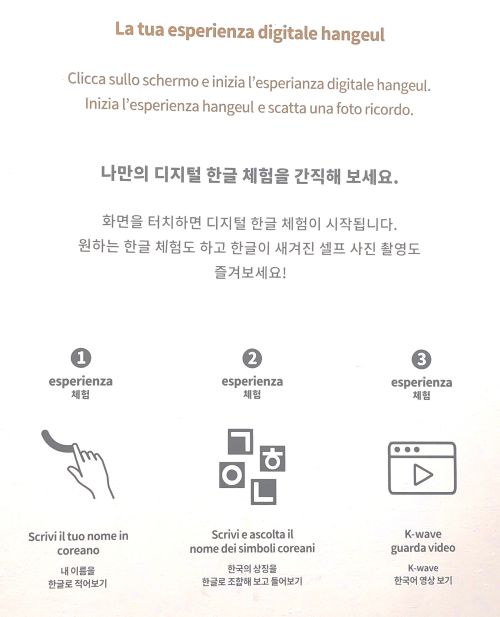 I had the pleasure of visiting it recently: the building is divided into thematic areas dedicated to various aspects of the country's culture. On the ground floor, for example, you can admire a visual installation dedicated to the “Four Korean Houses”, enter a reconstruction of a traditional house and experience the alphabet in an interactive way.