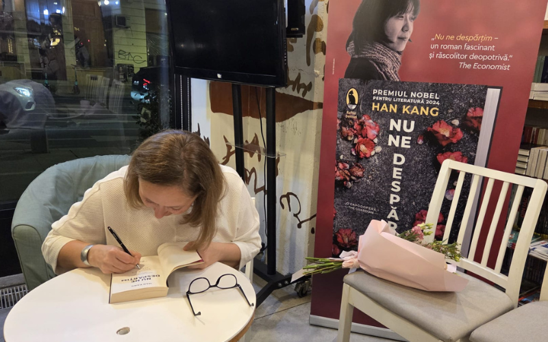 At the end of the evening, many guests left the bookstore with Han Kang’s books, We Do Not Part, The Vegetarian, Human Acts, and The White Book, in their hands and joy in their hearts. As Professor Yüksel signed copies, it became clear that Korean literature has found a lasting home in Romania.