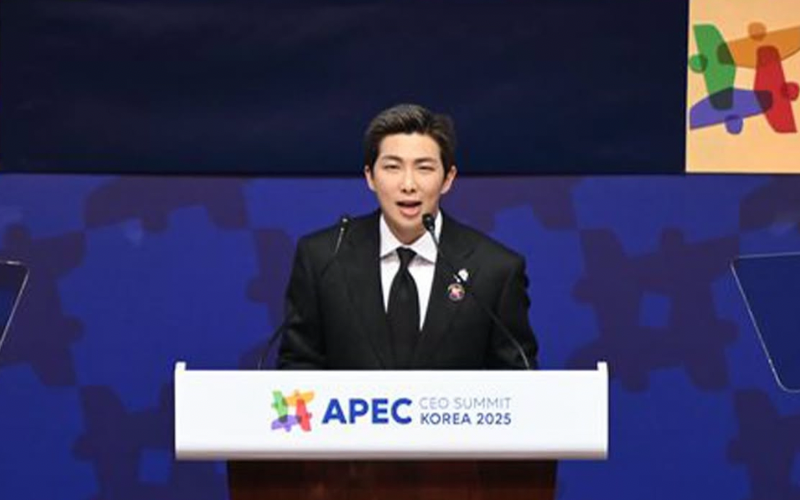 At the APEC CEO Summit, Kim Namjoon (RM), a famous Korean rapper, songwriter, music producer, and the leader of BTS, spoke on the second day, October 29. He addressed cultural and creative industries in the APEC region, and the soft power of K-culture captivated a global audience. He mentioned that K Pop's shining success is proof that cultural diversity and creativity are the greatest human potential, a force with no borders, no limits to growth. “Culture is like a river. It flows freely, different streams sometimes coming together in harmony. Just like K Pop coming together to carry itself far away and create something new. I like to see this creative flow of culture happen everywhere around the world.”