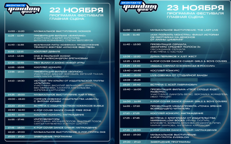 Фандом Фест ВКонтакте – это ежегодный фестиваль для любителей аниме, комиксов, азиатской культуры, косплея и K-POP. В этом году он пройдет 22 и 23 ноября в Москве. Уже не первый год ВК благодаря этому фестивалю дает возможность огромному количеству фанатов в той или иной сфере найти единомышленников, узнать новое, а также открыть мир популярного ныне сегмента развлечений для тех, кто еще не погружен в эту культуру.