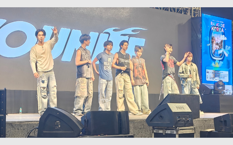 After that comes the most awaited and favourite part of the evening, YOUNITE, the 7-member K-pop boy group under Brand New Music, returned to the stage with their currently active six members, Eunho, Steve, Hyungseok, Woono, DEY, Kyungmun, and Sion, for an exceptional K-pop performance on their hit songs such as Geekin, Poco Loco, Pump Your Sneakers, Rock Steady, Taste, Trip, Bomba, and Waterfall. Their performance, featuring powerful choreography and charisma, captivated the audience and turned the festival into a full-blown concert. They also performed an epic K-pop Medley, which featured Soda Pop by Saja Boys, Fashion by Cortis, Boy In Luv by BTS, Style by Hearts2hearts, XO by ENHYPEN, and Ceremony by Stray Kids. It became the perfect climax to an already perfect day.