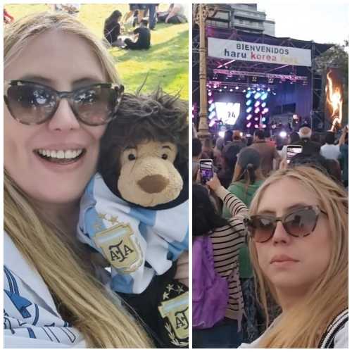 Pilar Sanmartin Guido, admiradora de acérrima de la cultura coreana y asidua concurrente a diferentes actividades que se organizan referidas a esta. Haciendo una comparación con eventos anteriores y más aún con el Haru Korean Fest del año pasado, expresa: … “Noto que este festival tiene el sello particular coreano, ya que antes era parte de una festividad de culturas asiáticas dentro de la cual se presentaba Corea (con sus stands de comidas típicas, atuendos, bailes y demás, pero en un espacio determinado), organizado por el Gobierno de la ciudad de Buenos Aires. A partir del año pasado es una celebración que organiza la comunidad coreana junto a entidades oficiales que la representa, sumado al apoyo de KOCCA y la empresa organizadora de eventos Hansori Stage, por lo que a mi mirada, tiene otro peso, es más importante , más familiar, con respecto al espacio, esta vez se eligió un parque facilitando que el recorrido fuera más cómodo; se pudo disfrutar más de los stands, el escenario estuvo estratégicamente ubicado, con respecto a la comida había una diversidad para elegir y degustar, lo mismo en el aspecto cultural: disfrutamos de los desfiles con la vestimenta típica, los bailes tradicionales que nos transportaban a una Corea real. En esto hago una valoración especial porque sentí que pudimos intercambiar nuestros sentimientos de argentinos con los de la comunidad coreana… ver a niños atraídos por los juguetes coreanos, sacándose fotos con los trajes, aprendiendo pasos del K-pop, fue muy significativo. Realmente podemos decir que Argentina es abierta a las otras comunidades y en especial a la cultura coreana así lo manifiestan los mismos coreanos. Fue una gran fiesta, nos emocionamos al escuchar nuestro Himno Argentino y luego el Himno coreano ahí sentí que ambas culturas se abrazan. Con respecto a nuestra presencia como Fandom, fue hermoso ver que el banner de Gu Jun Pyo era el atractivo para muchos seguidores de los K-dramas que se acercaban para sacarse foto y a interesarse por Lee Min Ho como también a compartir nuestra alegría de ser admiradores no solo de un actor en particular sino de esta cultura. Siento que fue un honor haber participado de este evento muy Hallyu (había de todo lo distintivo), poder llevar la bandera de Minho que justamente hace poco, recibió la distinción del presidente coreano por ser una estrella representativa del Hallyu con admiradores en todo el mundo, que lo convierte en un embajador de su cultura. Realmente fue una fiesta”.