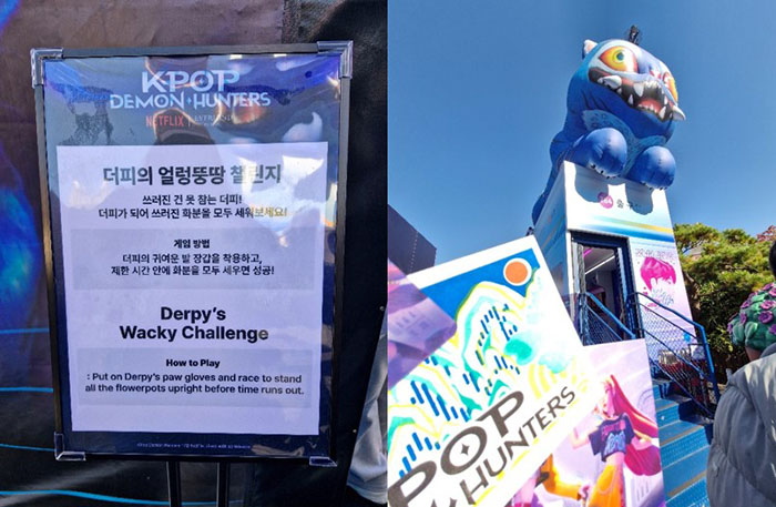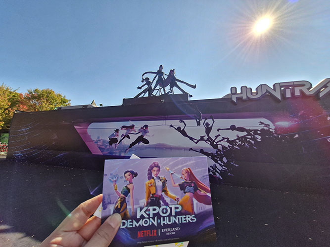 I participate on the stamp event at Everland Theme Park's K-Pop Demon Hunters Themed Zone on November 3, 2025. This unique Everland experience is only available for a short period of time, beginning on September 26 and ending on December 31, 2025. The K-Pop Demon Hunters film, which debuted on Netflix on June 20, 2025, swiftly rose to the top of the Netflix original film viewing charts. Since then, it became widely popular and had an immense cultural impact globally.