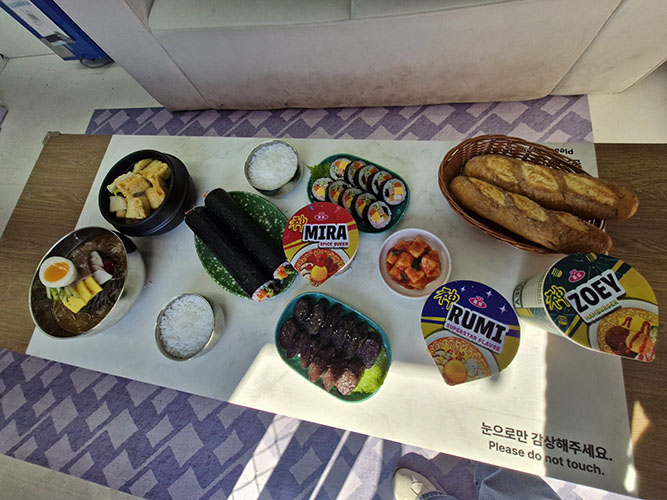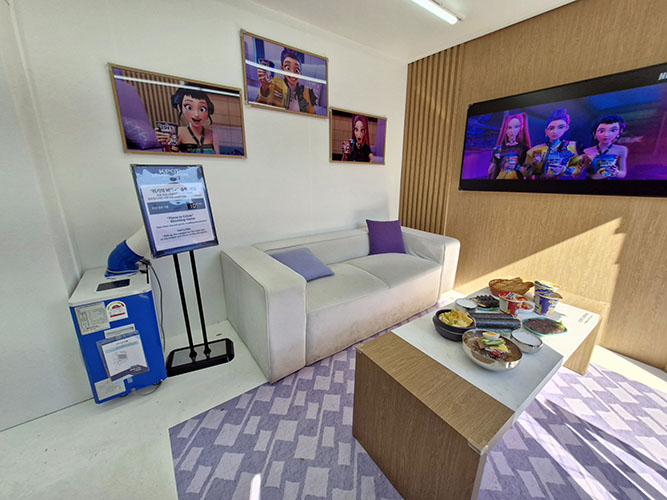 The HUNTR/X zone is one of the crowd's favorites since this features a similar set-up from the film, in which Rumi, Mira, and Zoey, members of HUNTR/X, are having fun on their own private plane. While savoring Korean snacks such as ramyeon, kimbap, and other hansik dishes, participants can re-enact the girl's mukbang scene.