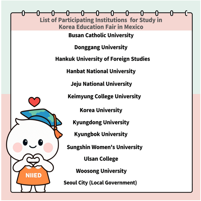 Para más información sobre este evento y otros programas pueden visitar la página de Study in Korea y la del Centro de Educación Coreana en México en donde podrán conocer sus ofertas sobre los cursos de idioma coreano y más temas relacionados con educación como el examen TOPIK y más.