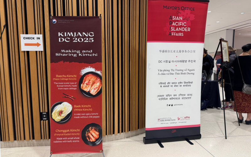 Held on the library’s fifth floor in the heart of Chinatown, the event was organized by the Korean Cultural Center DC in partnership with the DC Mayor’s Office on Asian and Pacific Islander Affairs (MOAPIA). Attendees celebrated Kimchi Day, learned about the history and meaning of kimjang, and explored the many ways Koreans use different ingredients to create their own distinctive styles of kimchi.