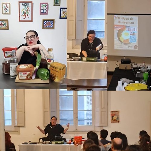 La última charla “Mas que sabor, la historia detrás de la comida en los K-dramas”. por Naiara Murua con experiencia en la gastronomía asiática. Ante mis preguntas me expresa: “Desde que comencé mi carrera gastronómica me dediqué a conocer las diferentes culturas, el contexto sociocultural en que está inmersos los alimentos de un pueblo. Un día conocí a la Chef coreana Sandra Lee, que realizó una cena en la vereda llamada “Introducción al Hansik”, cada mesa era atendida por una mamá coreana, que nos relataba lo que cada plato contenía tanto de ingredientes como la historia que lo rodeaba. Me alucinó nunca vi nada igual a parte de lo delicioso en el paladar, el respeto por el ingrediente, me hizo ver la comida de otra forma y cambié mi perspectiva. Soy cocinera y profesora, me apasiona compartir lo que sé. Propuse una charla-demostración interactiva para la convención que explora como la comida en los K-Dramas trasciende su función alimenticia para convertirse en un elemento narrativo cargado de emociones, tradición y significado cultural. Introducir a los asistentes a un plato icónico y con presencia recurrente en escenas de romance, amistad y conflicto, el tteokbokki. El Hansik nos trae esa emoción, la tradición y la cultura, que la llevo no solo a los sabores sino al respeto y entendimiento de todo lo que conlleva su realización”.