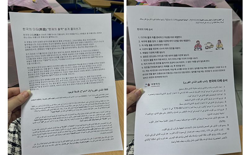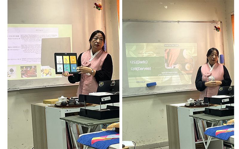 في صباح يومٍ هادئ من ٢٧ تشرين الثاني ٢٠٢٥، احتضن 'معهد الملك سيجونغ ' في الجامعة الأردنية عمّان فعالية ثقافية آسرة حملت عبق كوريا وهدوء طقوسها تحت عنوان ’فعالية الشاي الكوري وآدابه' كان المكان أشبه بغرفة تستيقظ على رائحة البخار الدافئ فيما تنساب النغمات الكورية الهادئة كأنها خيط موسيقي ينسّق إيقاع الجلسة.