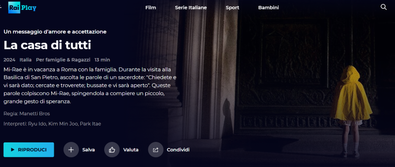 The short film was shot, exceptionally, partly inside St Peter's Basilica in the Vatican. The story, which is very simple, tells of a Korean family's trip to Rome. While visiting some monuments, including St Peter's Basilica, Mi Rae is struck by a priest's words: “Knock and it shall be opened unto you”. This message embodies the values of hope, inclusion, solidarity and hospitality, which are important to convey to children, who represent the future.