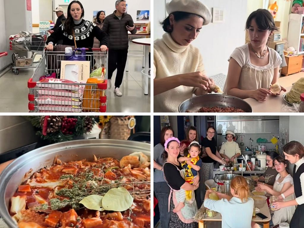 What made the celebration unique was its community spirit: Romanians living in Seoul—students, young professionals, or visitors—cooked and prepared everything by hand. Together, they rolled around 500 sarmale, Romania’s iconic cabbage rolls filled with seasoned minced meat and rice, slow-cooked until tender and aromatic, stirred pots of mămăligă, a comforting cornmeal dish similar to polenta, loved across Romania for its simplicity and warmth, plated desserts, arranged games, and welcomed guests with the contagious joy of sharing one’s culture far from home. Korean guests noted how surprisingly familiar and comforting the flavors of these traditional dishes felt.