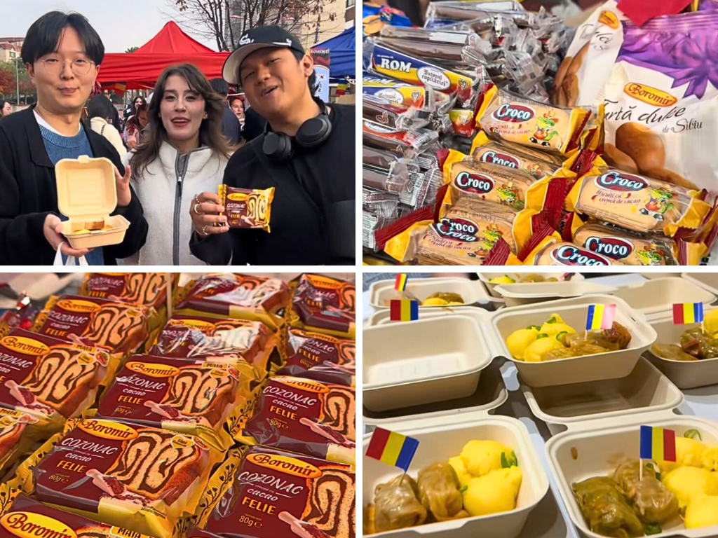 This year’s menu was a heartfelt culinary journey. Many of the sweets and snacks had travelled directly from Romania so that Koreans could experience truly authentic tastes. Beyond the classic sarmale and mămăligă, visitors could try covrigi (Romania’s beloved street pretzels, soft-centered and sprinkled with sesame or poppy seeds), turta dulce (spiced gingerbread cookies enjoyed around winter holidays), eugenii (iconic wafer sandwiches filled with chocolate cream), as well as other traditional candies cherished by generations of Romanian kids, such as ROM chocolate (famous for its rum-flavored cream and tricolor wrapper) and Făgăraș chocolate (a fondant-filled childhood classic) - two nostalgic Romanian treats that quickly became conversation starters.