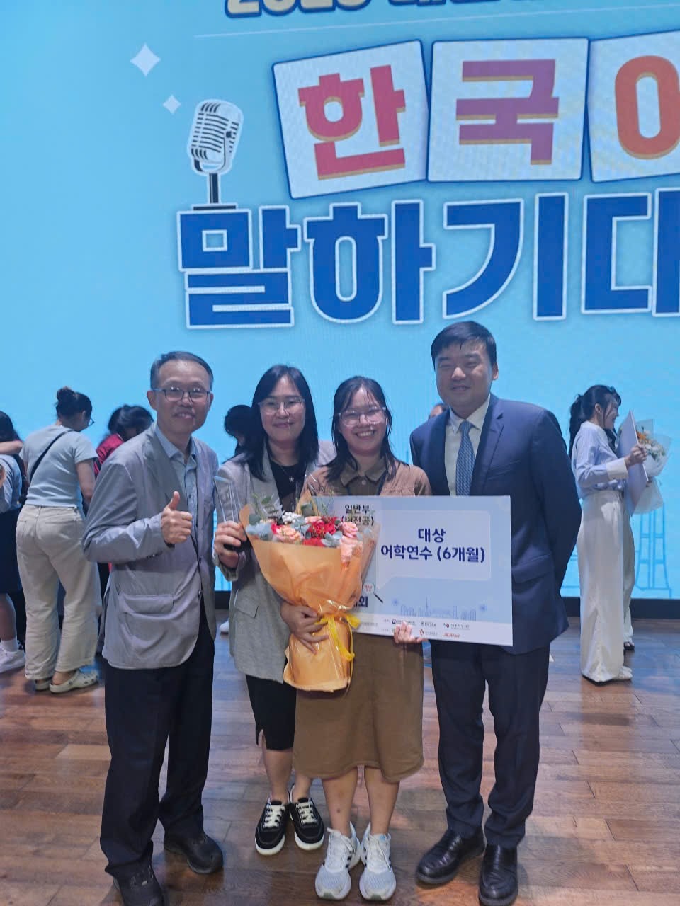 PV: Xin chào bạn, cảm ơn bạn đã nhận lời tham gia buổi phỏng vấn cùng Korea.net. Trước hết, xin chúc mừng bạn đã xuất sắc vượt qua rất nhiều thí sinh để giành giải thưởng cao nhất tại “Cuộc thi Nói tiếng Hàn toàn quốc – Cúp Đại sứ Hàn Quốc 2025”. Bạn có thể giới thiệu đôi nét về bản thân để độc giả cùng biết thêm được không?