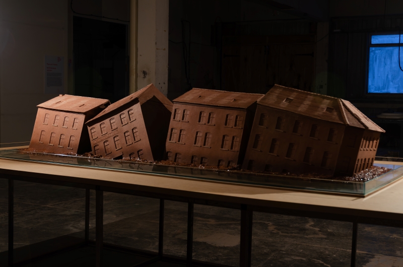 5. What do you want people to think about when they see the houses made from unfired clay dissolve in water?