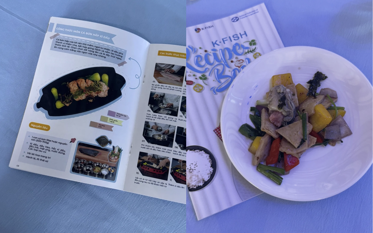 Buổi trình diễn giới thiệu năm món ăn nổi bật, mang sắc thái đa dạng từ thanh nhẹ đến đậm đà: bào ngư xốt hồng xíu, chả cá & hàu xào rau củ ngũ sắc với trứng cá minh thái và lá kim, cá bơn hấp xì dầu, cá thu kho dứa và cà chua, cùng gỏi lươn - rong biển xốt chua ngọt. Qua bàn tay của các đầu bếp, những nguyên liệu Hàn Quốc quen thuộc trở nên gần gũi hơn với khẩu vị Việt mà vẫn giữ được hương vị biển cả nguyên bản.