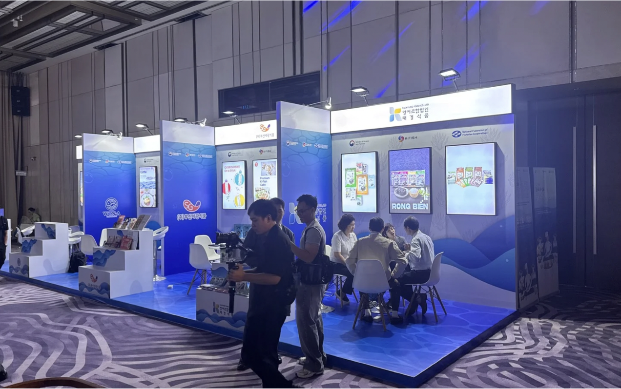 Song hành với cooking show là khu vực giao thương B2B, nơi quy tụ loạt doanh nghiệp tiêu biểu trong ngành hải sản Hàn Quốc. Các gian hàng mang đến nhiều sản phẩm đa dạng từ hải sản đông lạnh, hải sản tươi sống đến bào ngư, lươn biển, cá bơn, cá thu, hàu và trứng cá tuyết muối… đáp ứng nhu cầu khác nhau của ngành F&B Việt Nam.
