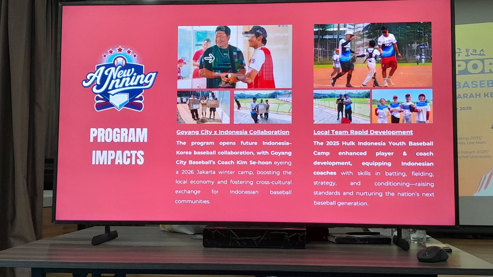Selain meningkatkan keterampilan para atlet dan pelatih bisbol Indonesia, Ugrasena pun menyampaikan Hulk Indonesia Youth Baseball Camp 2025 turut membuka peluang kerjasama antara Indonesia dengan Kota Goyang, Korea. Pelatih tim bisbol Kota Goyang, Kim Se Hoon menyatakan rencana untuk melaksanakan “Winter Camp 2026” di Jakarta dan berharap program ini mampu meningkatkan kemajuan bisbol kedua negara, mendukung pertumbuhan ekonomi, serta meningkatkan diplomasi Korea dan Indonesia.