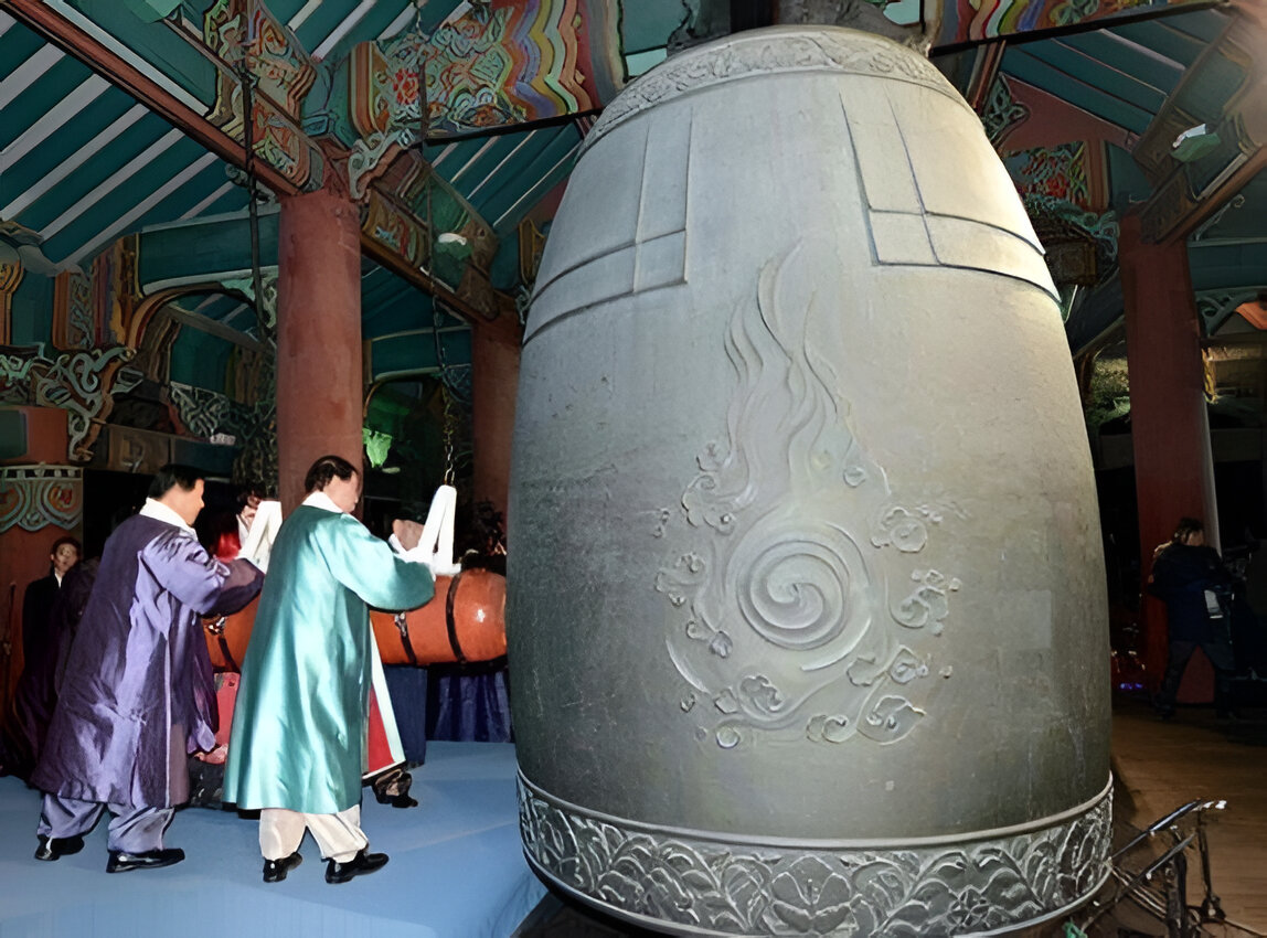 The ceremony takes place at Bosingak Pavilion, located in Seoul’s historic Jongno district. The pavilion and its massive bronze bell date back to the Joseon Dynasty (1392–1897). Historically, the bell was struck daily to announce the opening of the city gates at dawn and their closing at night, regulating the rhythm of urban life. Although modernization rendered this function obsolete, the bell has endured as a powerful cultural symbol.