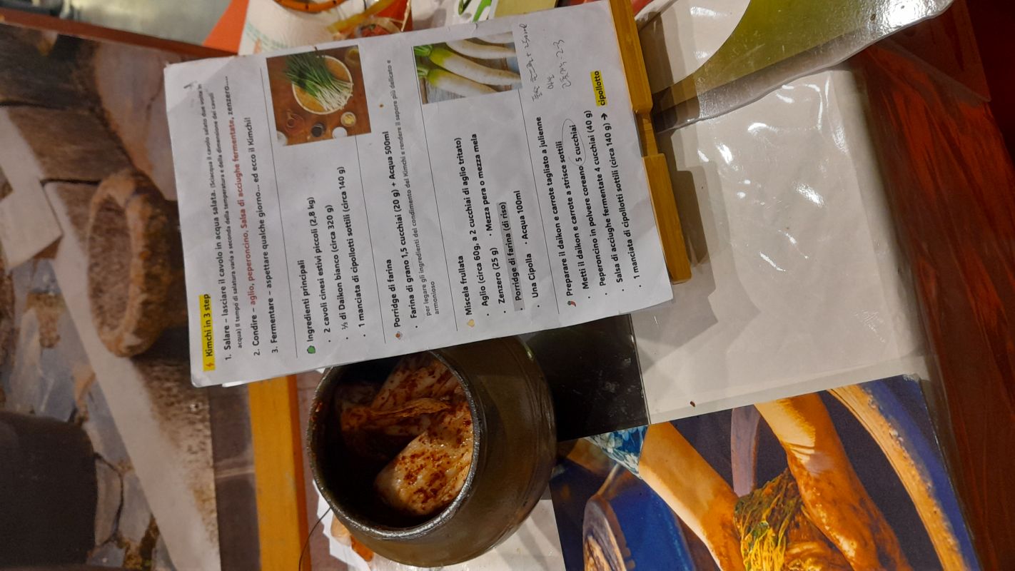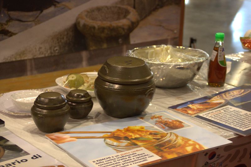 In Korea, kimchi is traditionally left to ferment in onggi, clay pots whose porosity helps facilitate the fermentation process. Although these pots are not commonly available in Italy, I saw some reproductions at the Korean Cultural Institute in Rome.