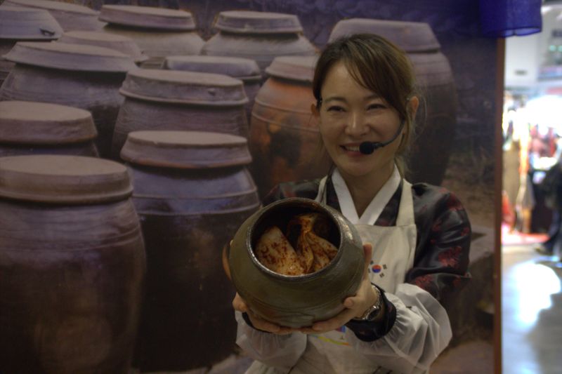 At the Festival of the Orient, Lea, a Korean woman who is living in the United States, gave a cooking demonstration in which she showed attendees how her family prepares kimchi.