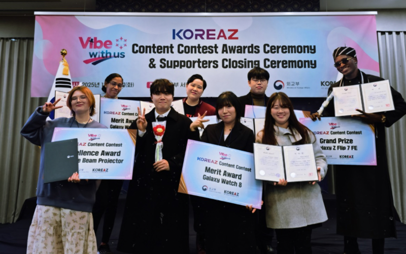 On the 23rd of December 2025, there was the award ceremony, and all winners (7 people) of the First Global KOREAZ Ministry of Foreign Affairs Digital Global campaign “Vibe with US” Content Creation Contest travelled to Korea to receive the Republic of Korea Minister of Foreign Affairs Award and a prize. This Award ceremony was held in the Ministry of Foreign Affairs (MOFA) Headquarters, Republic of Korea (Seoul), around 2pm KST. The winners were First grand prize: Tersoo Gabriel Uke - “Samsung Galaxy Flip 7 FE”. The second prize: Slavyana Pavlova, Jinkang Lee - “Portable Beam Projector”. Third prize: Aiyaphat Wankawisant, Samantha Deler Mozo, Tteokbokk Paljjidan - “Samsung Galaxy Watch 8” and the Special award: Zhang Hanshu - “Samsung Galaxy 8”