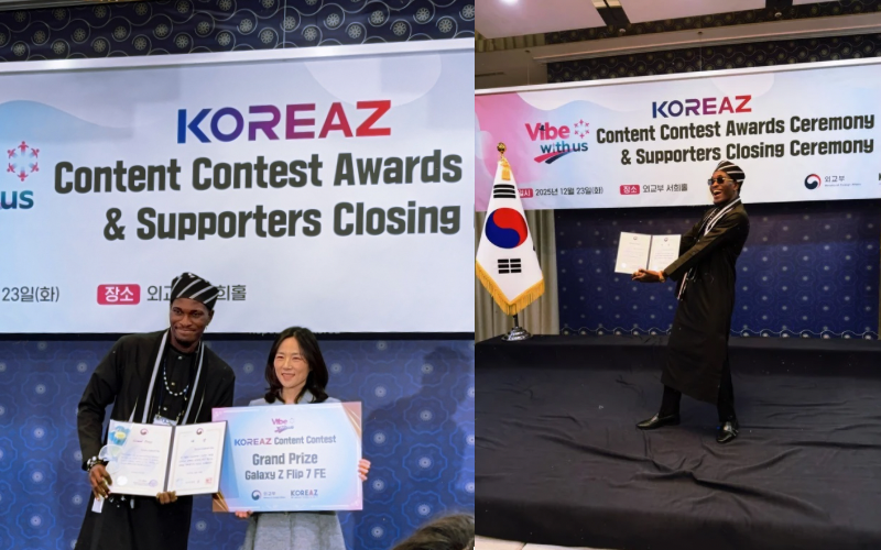 Nigerian wins Grand Prize in the First Global KOREAZ Ministry of Foreign Affairs Digital Global campaign “Vibe with US” Content Creation Contest Award held in December 23 2025.