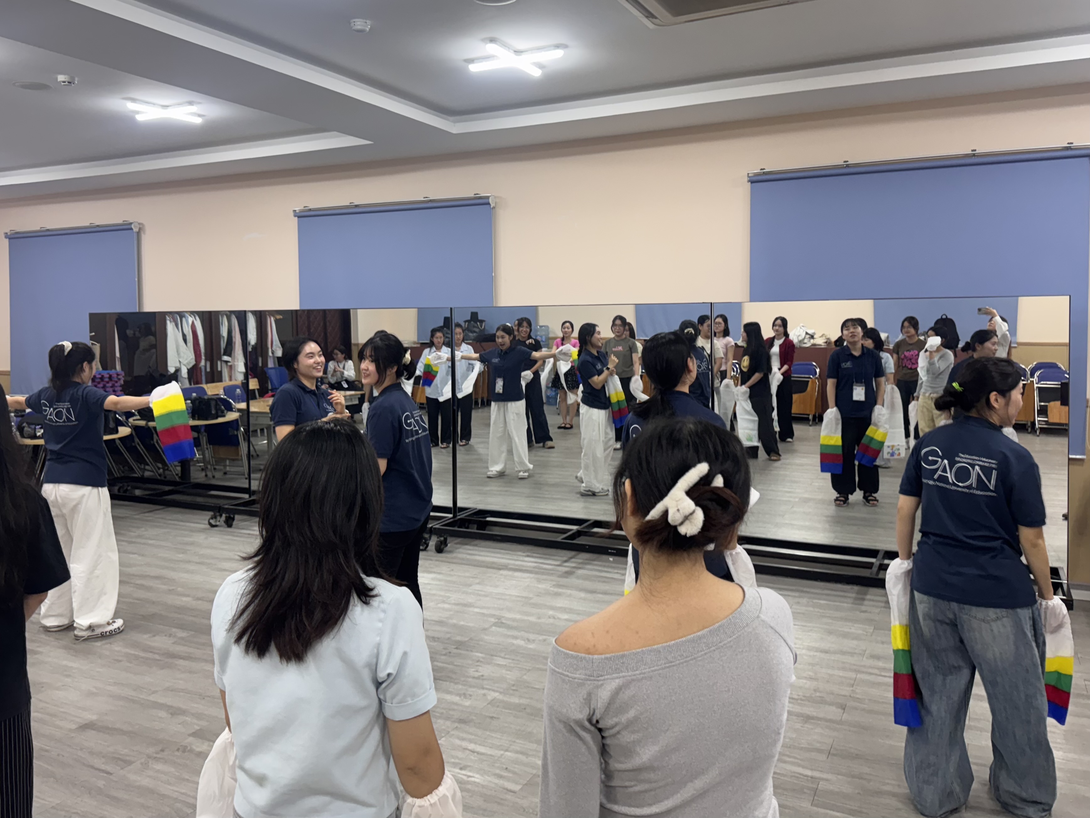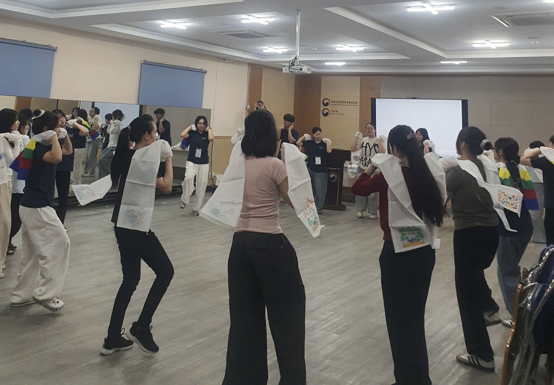 Tiếp đó, lớp học múa Hansamchum mang đến một trải nghiệm rất khác so với việc chỉ quan sát biểu diễn. Khi trực tiếp thực hành, mình cảm nhận rõ sự phối hợp giữa nhịp thở, chuyển động tay và sự uốn lượn liên tục của dải lụa Hansam. Các động tác được thực hiện theo tiết tấu rõ ràng, nhấn mạnh sự mềm mại và tính liên kết của chuyển động.