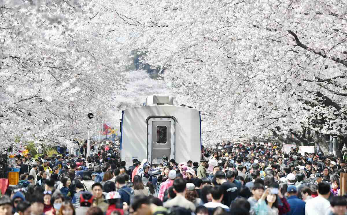 The peak bloom usually occurs in mid-April, a time when Jinhae becomes a living time capsule of spring. Every corner of the city is a photograph waiting to be taken: cherry-lined bridges, riverside walkways, and train tracks that seem to disappear into petals. Visitors often describe a sense of timelessness, walking beneath branches heavy with flowers, surrounded by laughter, music, and the gentle murmur of the river. It is an atmosphere that stirs both tranquility and excitement, a combination that is almost impossible to forget.