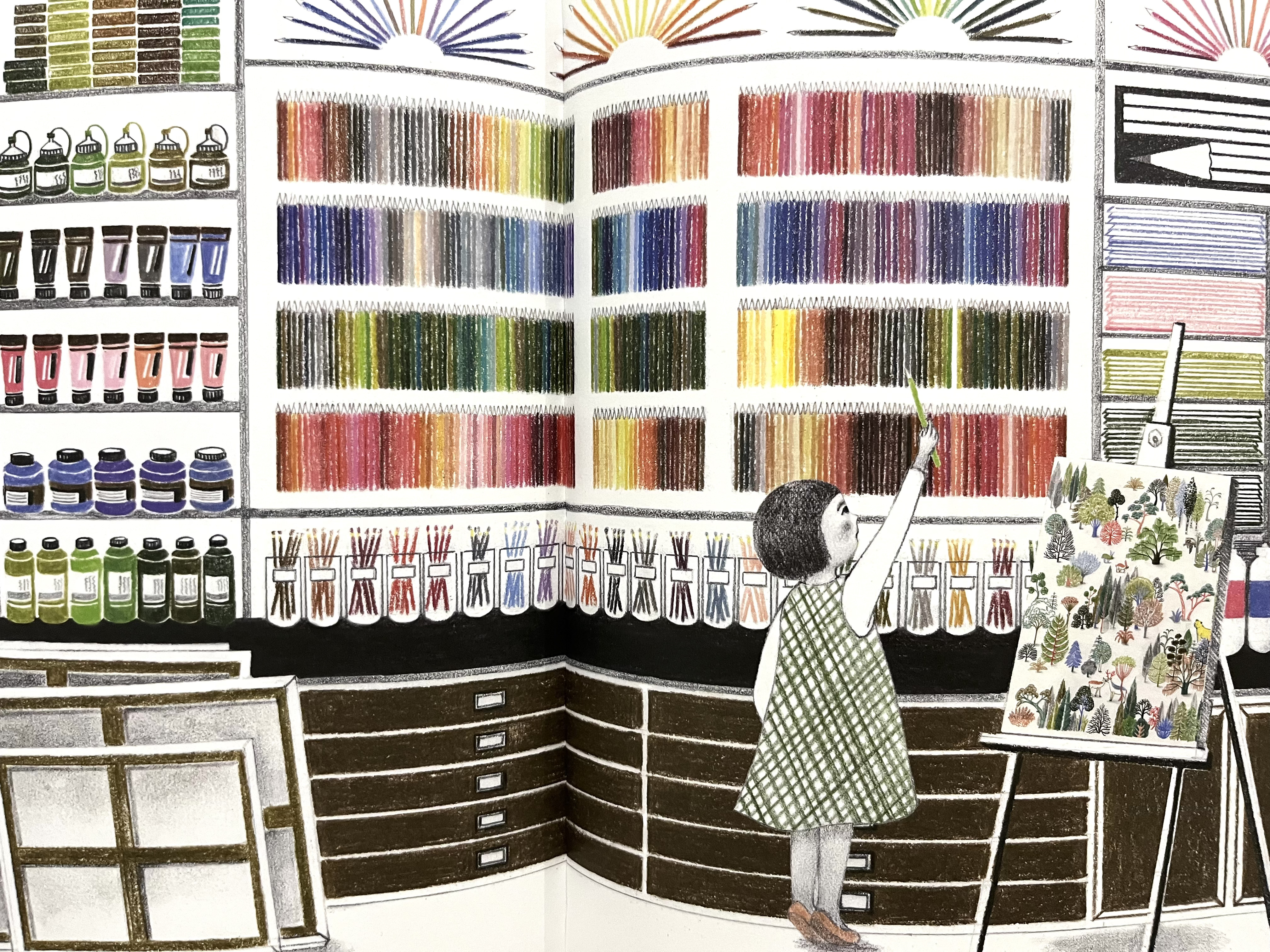 Détail d'une illustration figurant dans l'album Le Crayon, de l'autrice-illustratice Kim Hye Eun, publié chez CotCotCot Éditions. Photo prise par Justine Houllé