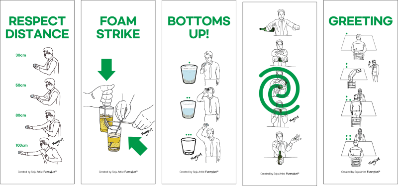 I first planned this project in 2014. The result was published as a Korean book in 2021, followed by the English edition in 2026. At the time, I found it fascinating that despite soju being the best-selling spirit in the world, there were hardly any books or content that properly explained it. In particular, there were almost no cases of systematically organizing K-drinking etiquette through illustrations, which became a significant motivation for me to start this work with the mindset that "someone must organize this." Furthermore, I was driven by the fact that the cultural aspects so familiar to Koreans that they go unexplained are often the very things foreigners are most curious about. Based on this, I have been promoting Korea’s drinking culture (K-drinking etiquette) through exhibitions, performances, and lectures across Europe, Japan, and Southeast Asia, as well as in Korea.