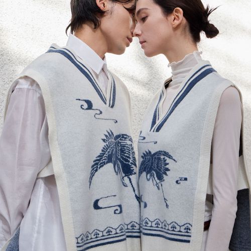 Blue and white porcelain is the traditional element that MOOROOTS loves most, and we have worked with it several times. In the past, blue and white porcelain was a treasure used only by the royal family and nobility because it required high technical skill and expensive pigments. This "Blue and White Knit Baeja" (vest) was specifically created for Park Bo Gum. It was the optimal item to express his beauty and nobility while capturing the unique color palette of MOOROOTS. Structurally, we reinterpreted the Git (collar) and side-line details of actual Hanbok through knitwear technology to create an item that feels both traditional and modern.