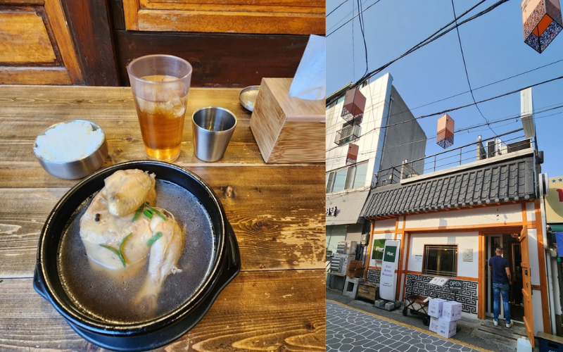 My second stop was near Gyeongbokgung Palace to explore traditional food culture at a restaurant ‘Iftar’ with a traditional Korean hanok-style interior design, wooden designs, warm lighting, and a menu that immerses you in Korean culinary heritage. I chose a dish I've always dreamed of trying, which is 'samgyetang', a traditional Korean chicken soup notoriously known for its health benefits, commonly consumed in the summer to fight the heat and replenish fluids and electrolytes through sweating and physical activity. This dish typically consists of a whole small chicken stuffed with garlic, rice, and ginseng. This restaurant's version contains half a small chicken to accommodate individual portions. I was truly impressed by the healthy and nutritious taste of this soup, especially with rice as a side dish, a highly recommended meal for tourists after a day of exploring the city by walking or doing hiking activities.