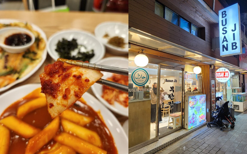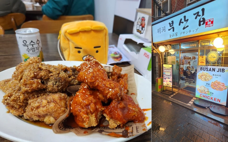 Considering I was staying in Myeongdong during my trip, my first stop was obviously 'Busan Jib' with its two different branches nestled in the vibrant streets of Myeongdong, the first one serving halal Korean fried chicken, also known as 'yangneom chicken' with its savory combo of spicy, salty, and sweet flavors all at once, giving it a distinctive style. They also have other varieties of flavors, including garlic sauce and spicy gochujang. The second branch of 'Busan Jib' has a wider range of options in traditional Korean cuisine, serving dishes such as 'tteokbokki', 'haemul Pajeon', etc.