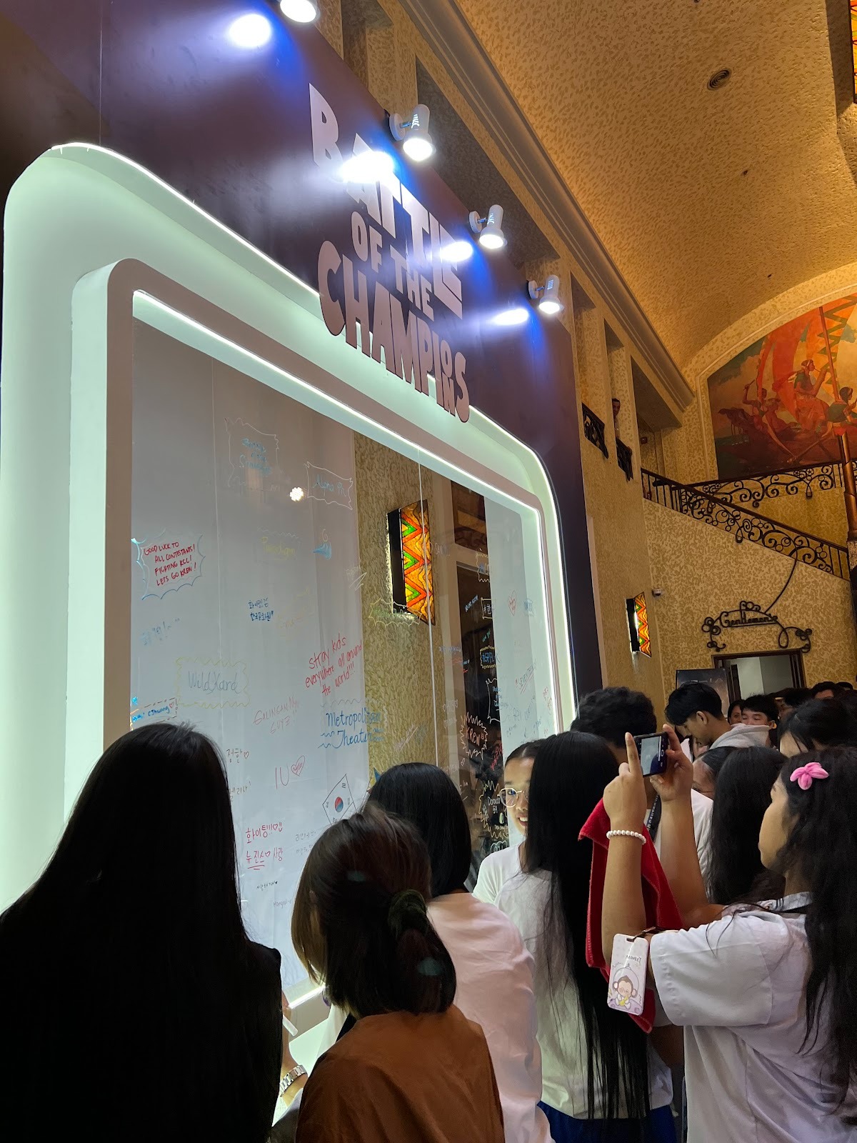 I found myself drawn to that corner, watching fans—students, friends and even first-time attendees—pick up pastel markers and write their thoughts. One by one, the board filled up. I saw familiar names like BTS, BLACKPINK and NMIXX written in different colors and styles. Some added hearts, doodles or inside jokes only fellow fans would understand.