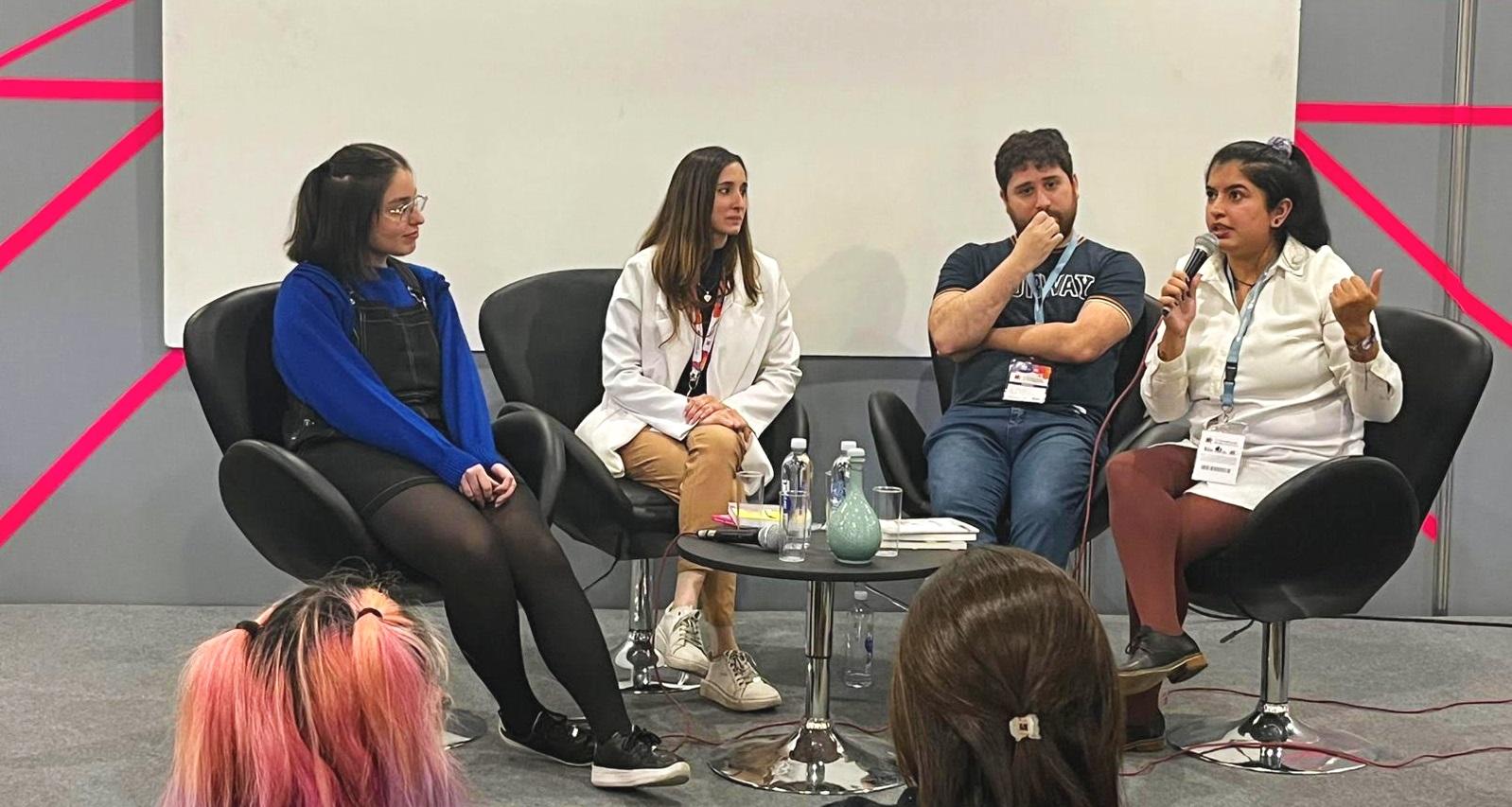 El encuentro tuvo lugar el lunes 1 de mayo en la “Zona Futuro” de la Feria y participaron Nicolás Braessas, editor y traductor de la editorial Hwarang, la cual se especializa en literatura coreana; Natalia Bustamante, más conocida como “Naty Escucha”, youtuber y creadora de contenidos sobre Corea; Flor Castillo, escritora de reseñas y libros de la cultura pop; y Mech Gaitán, creadora de contenidos para “TalkKorea”.