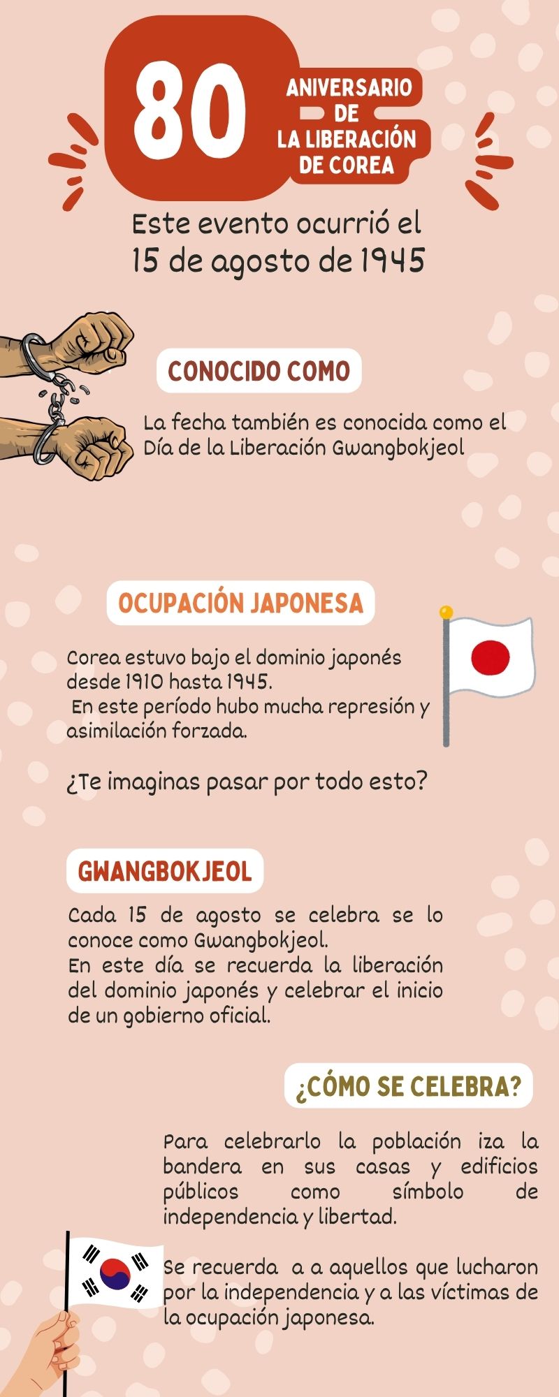 Este año es el aniversario 80 de la Liberación de Corea y en esta infografía explico que es conocido también como el Día de la Liberación Gwangbokjeol