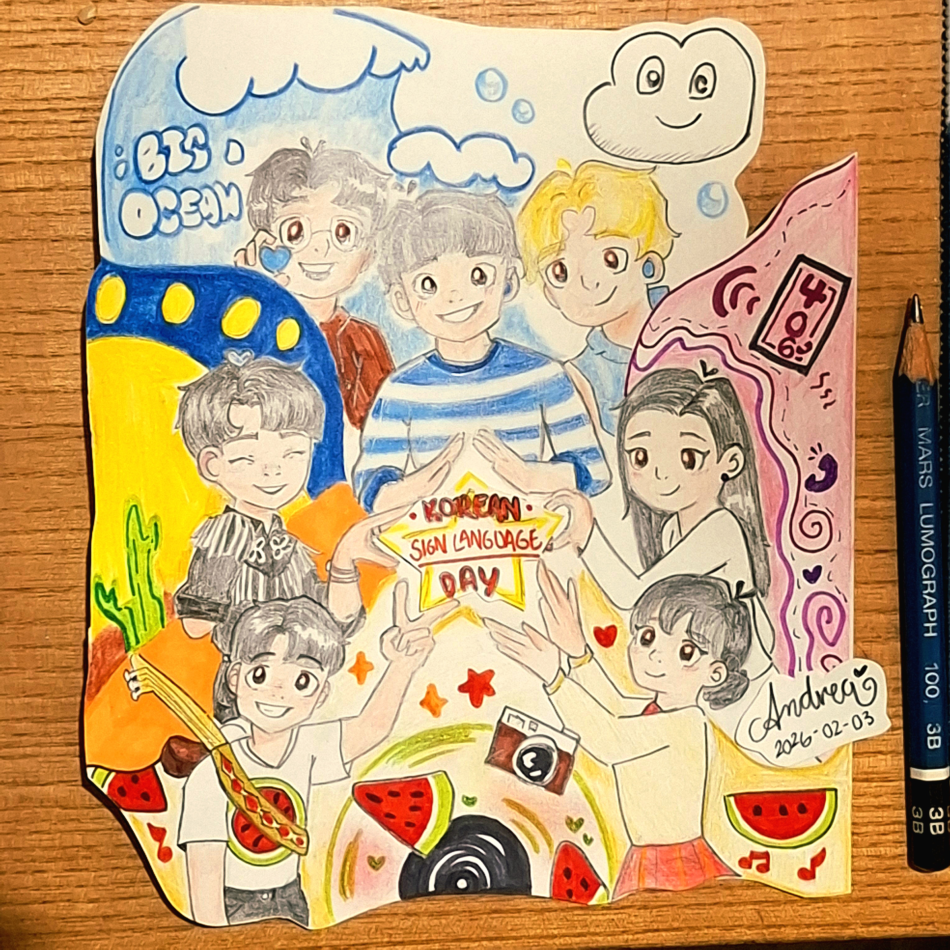 Una ilustración en honor al 3 de Febrero: Día del Lenguaje de señas coreano En la parte superior